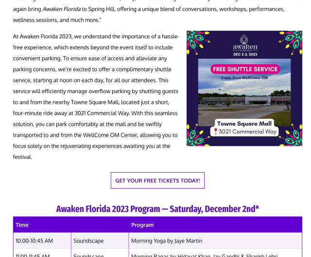 Block out the noises of the external world and reconnect with your inner voice via soulful morning and evening music, sound healing sessions, and drum sessions that will trigger a peaceful response. At The Awaken Florida Festival, you will harness the energy of sounds and join us on a quest of self-discovery by channeling your Mind, Body, and Soul.